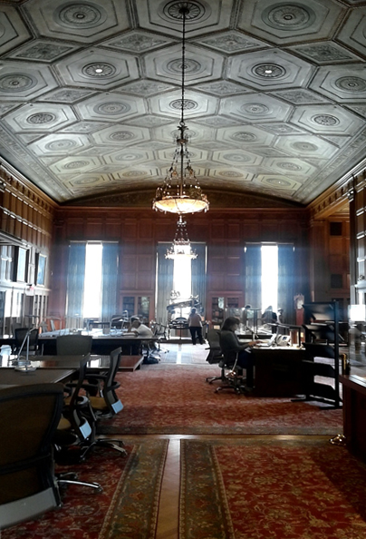 Clements Library가 리모델링을 마치고 지난 6월에 새롭게 개장을 해서, 도서관 관계자들을 초대하는 자리를 마련했습니다. 주로 고서와 정부 문서를 소장하고 보존하며, 제한적으로 열람을 제공하는 도서관입니다. 1층 열람실은 월-목은 허가 받은 연구자만 이용할 수 있고, 금요일만 일반 이용자에게 공개됩니다. 지하는 보존실, 복원실, 회의실이 있어 일반 이용자들에게는 접근이 허용되지 않지만 이날의 투어는 도서관 내부 관계자를 위해 마련한 자리여서 보존과 복원하는 곳을 둘러볼 수 있었습니다.