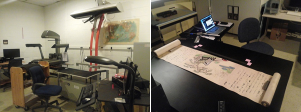 자료를 디지털화하는 Digital Conservation Unit(DCU)와 도서 및 각종 자료들을 복원 및 수선을 해주는 Preservation and Conservation 부서에서 오픈 하우스를 열어서 방문했습니다. 두 부서는 캠퍼스에서 차로 10분 정도 거리에 따로 떨어진 Buhr 빌딩에 위치합니다. 그래서 사람들이 잘 모르기에 정확히 어떤 업무를 하는지 나누고 싶어서 이런 이벤트를 마련했다고 합니다. 그 덕분에 물리적 자료가 어떻게 디지털화가 되는지, 스캐너와 카메라와 같은 고도의 디지털 장비를 활용하는 작업 과정을 살펴볼 수 있었습니다. Preservation and Conservation 부서는 수선이나 복원, 보존을 위한 처치가 필요한 자료들을 다루는 곳입니다.