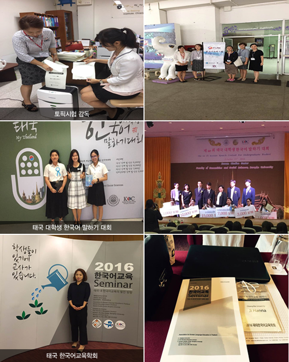 10월 16일 치앙마이대학교에서 처음으로 48회 토픽시험을 실시하였습니다. 시험 전 3번의 OT와 시험장 정리 등 사전 모임을 하고 저는 태국어를 구사할 수 있어서 제1감독관으로 배정되어 아침 8시부터 5시까지 시험 감독을 하였습니다. 토픽 시험을 보는 태국 학생들을 직접 보게 되는 잊지 못 할 좋은 경험을 하였습니다.