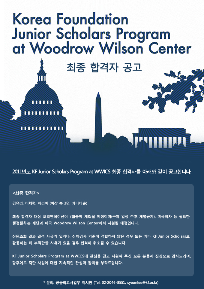 2011년도 KF Junior Scholars Program at WWICS 최종 합격자