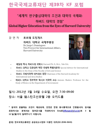 제39차 KF포럼 개최(연사: Jorge Dominguez 하버드대 국제부총장)