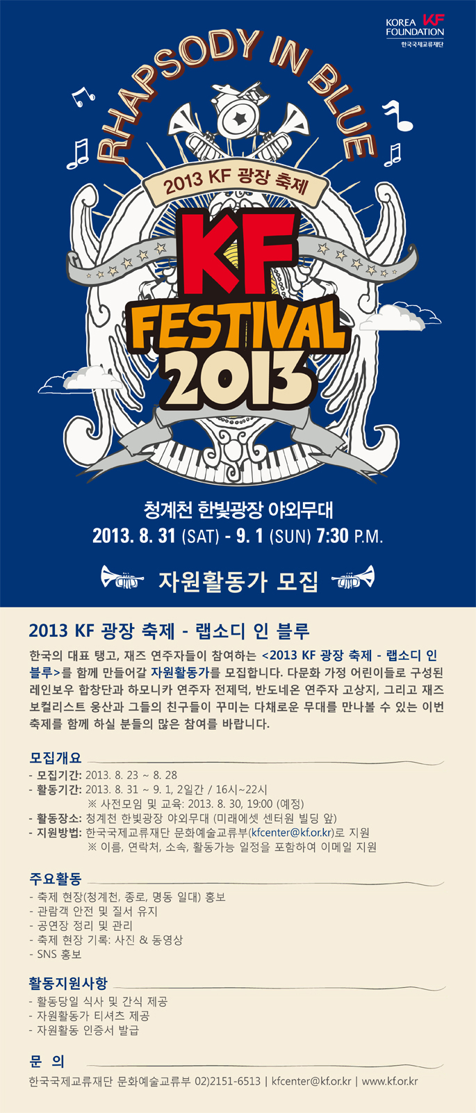 [자원활동가 모집] 2013 KF광장축제 - 랩소디 인 블루