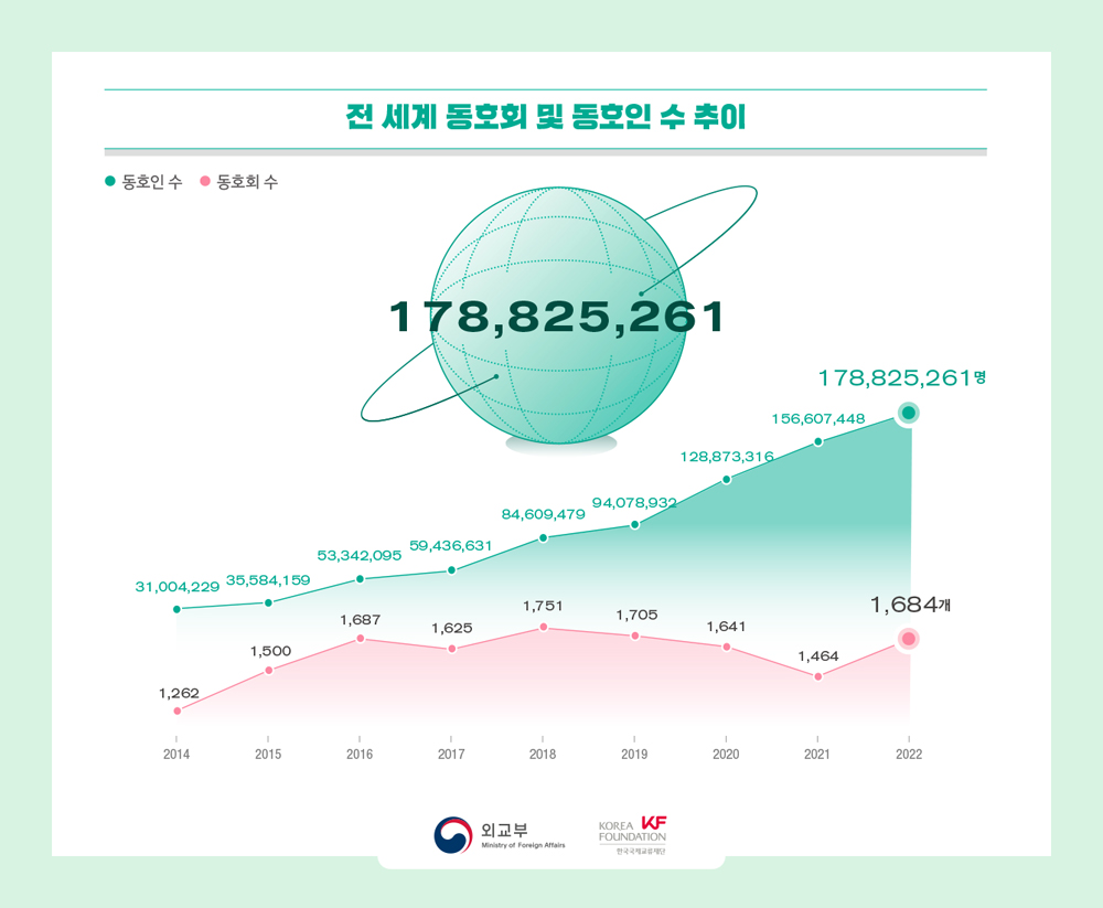 KF는 전 세계 118개국 149개 재외공관과 협력하여 〈2022 지구촌 한류현황〉을 발간하였습니다.