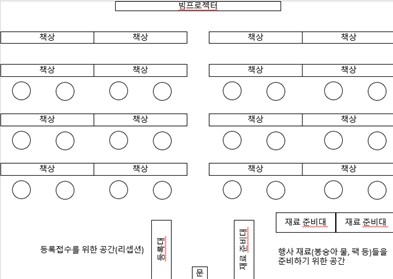 어제 신촌에서 회의를 진행 한 이후 미리 행사장소에 답사를 다녀왔습니다. 아래는 배치예상도입니다.